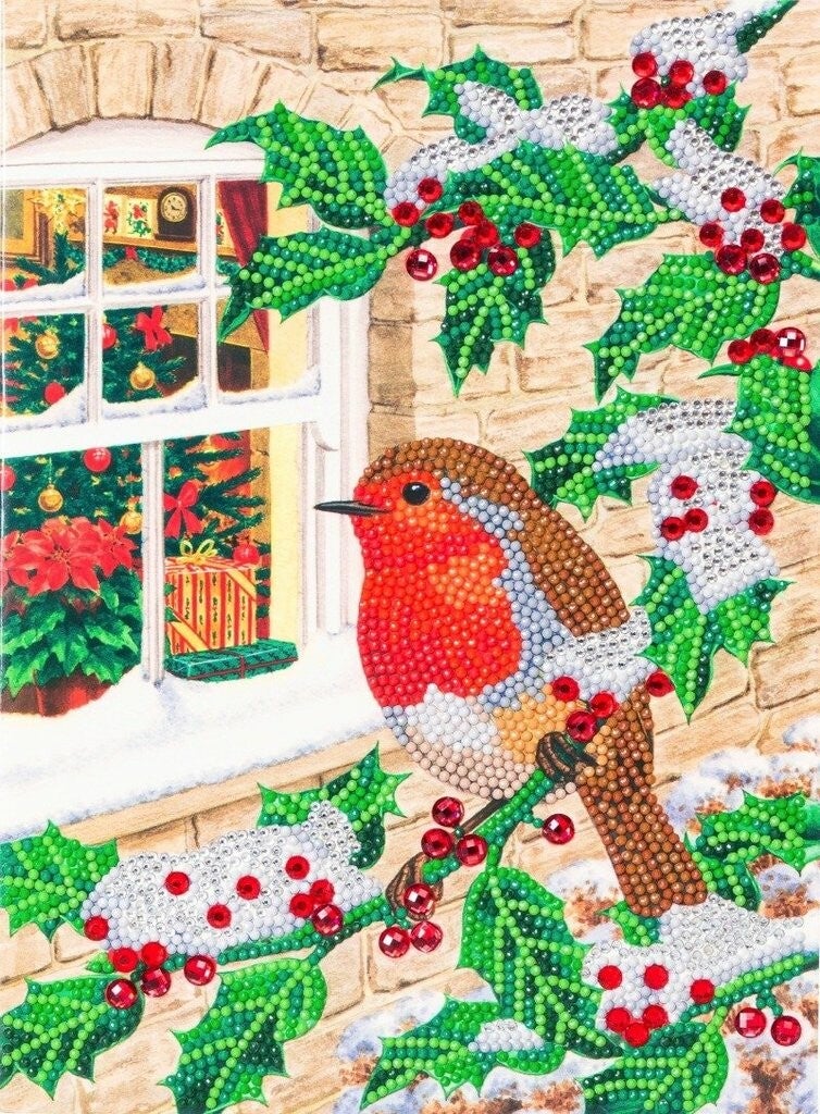 CCKXL-7 "ROBIN AT THE WINDOW", 21X29CM GIANT CRYSTAL ART CARD