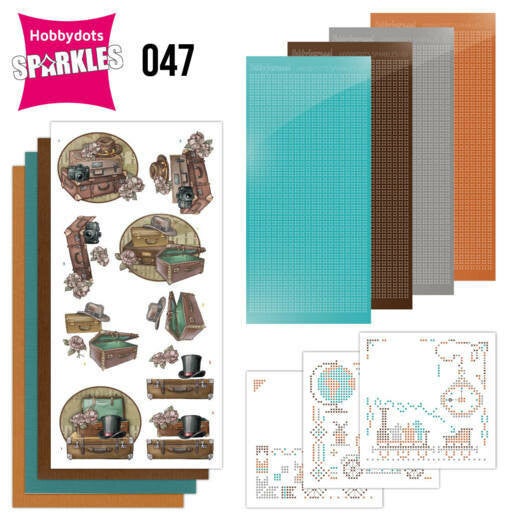 Deze handige set met Hobbydots-Sparkles bevat vier Sparkles stickervellen, drie oplegkaarten met patronen, drie 3D-afbeeldingen en drie vellen kaartkarton. Omdat het patroon in kleur is voorgedrukt op de oplegkaarten, kun je deze set gebruiken zonder Led Board.