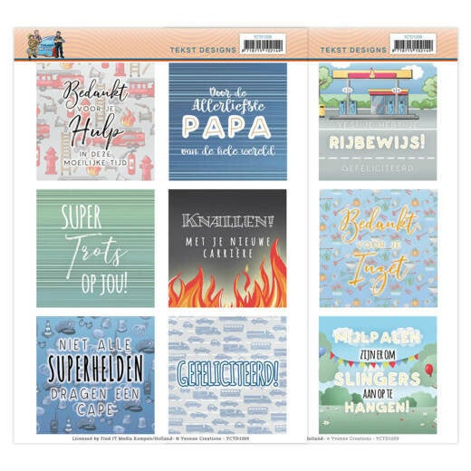 Set van 2 Push-Out vellen met in totaal 12 Nederlandse teksten, passend bij de collectie.