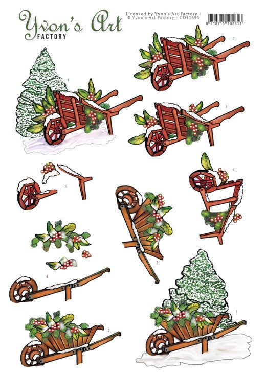 3D Cutting Sheet - Yvon's Art - Christmas Wheelbarrow