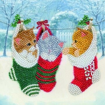 CCK-XM90: Christmas Kittens, 18x18cm Crystal Art Card